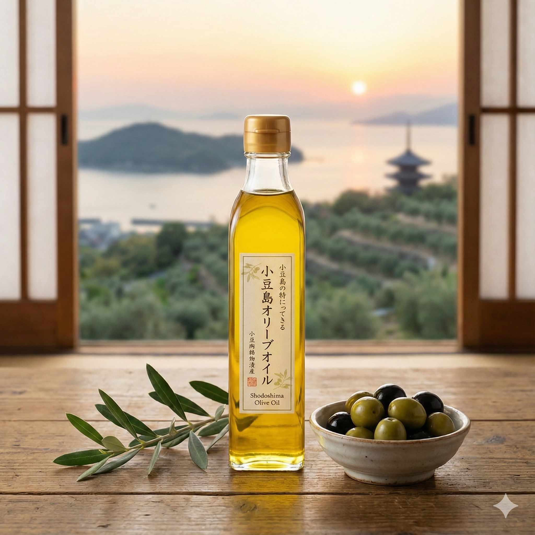 منذ عام 1908، ساعد المناخ الدافئ والمعتدل في "بحر سيتو" جزيرة شودوشيما على أن تصبح أول مكان في اليابان لزراعة الزيتون بنجاح، وهناك أشجار زيتون مزروعة في كل مكان على الجزيرة مما يجعل المشهد جميلًا للغاية.